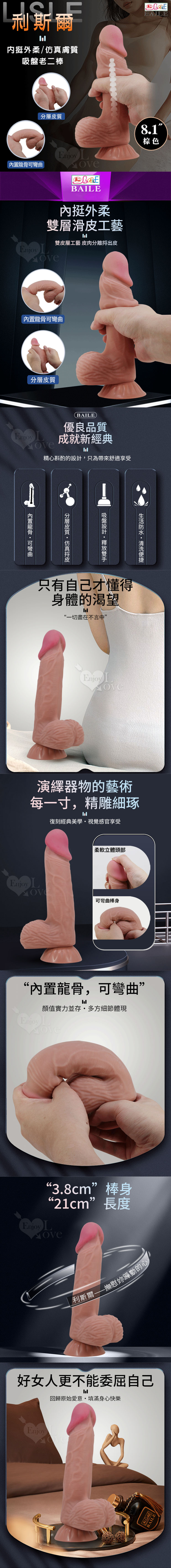 BAILE LISLE 利斯爾 雙層滑皮仿真吸盤假陽具 8.1吋