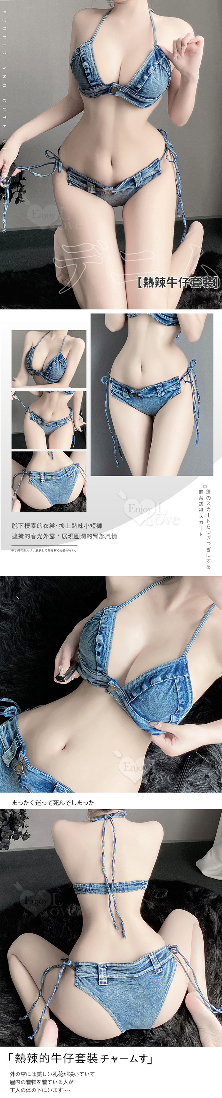 帥氣牛仔女孩 二件式綁脖比基尼+兩側綁帶V型美臀褲