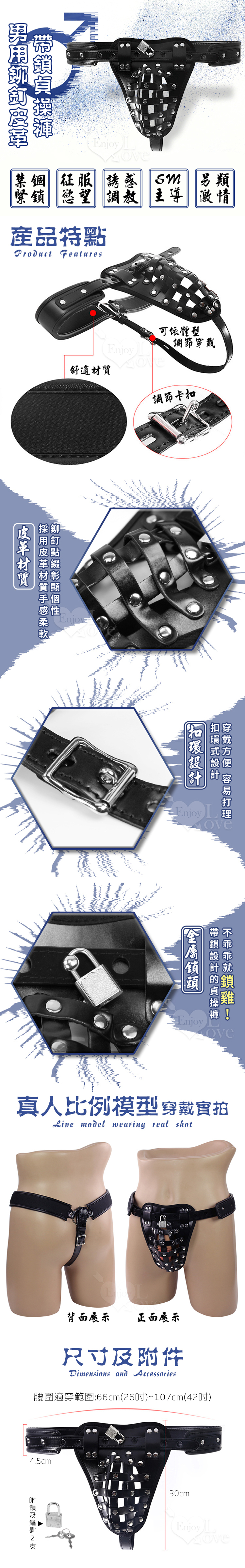 禁錮鳥籠鉚釘皮革帶鎖男用貞操褲(附鑰匙)