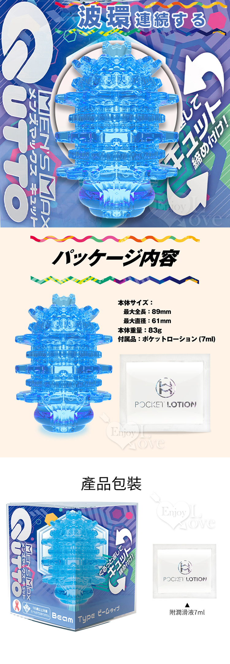 肉厚波浪環刺激,使用時,透過將主體的凹凸面向內轉動,使波浪環向內側集中,透過緊緊擠壓摩擦,您可以體驗享受到刺激快感。