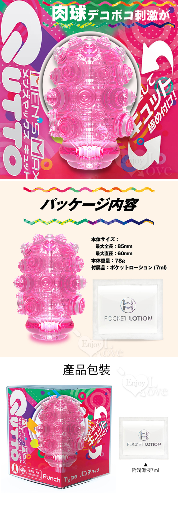 大小凹凸肉球刺激,使用時,透過將主體的凹凸面向內轉動,使大小的凹凸肉球向內側集中,透過緊緊擠壓摩擦,您可以體驗享受到刺激快感。