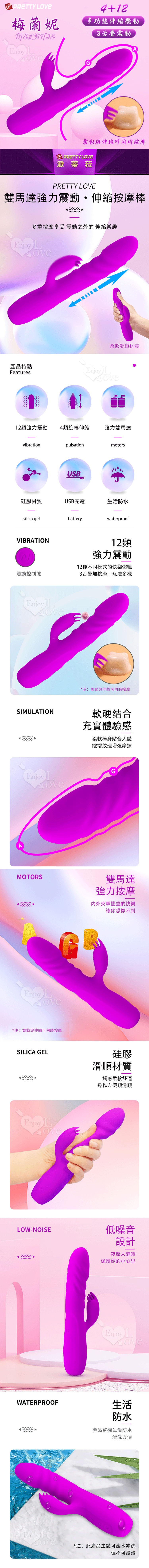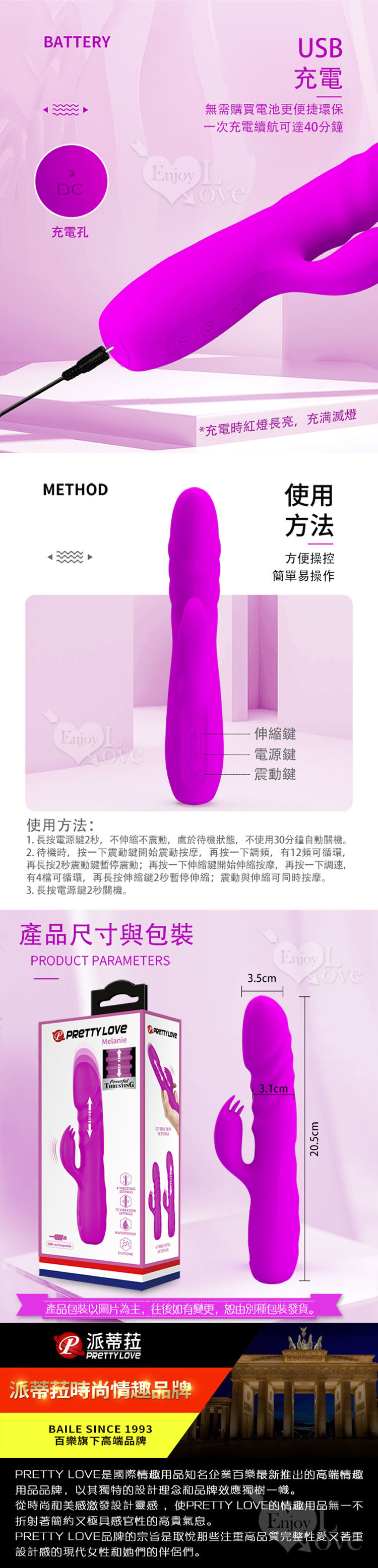 PRETTY LOVE Melanie 梅蘭妮 伸縮攪動3舌疊震動 全方位內外刺激按摩棒