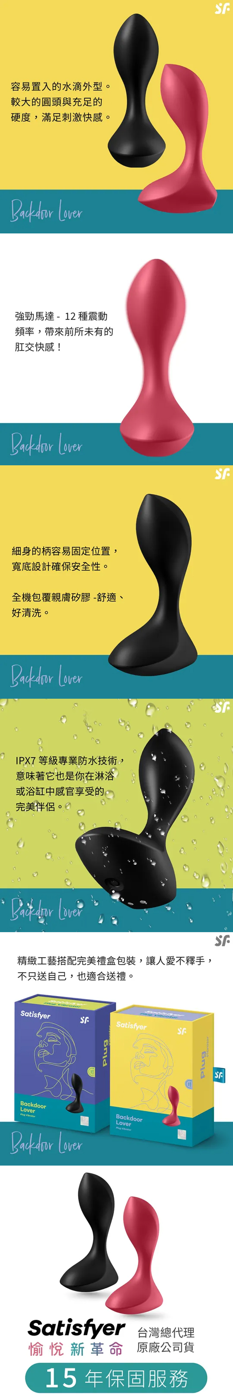 Backdoor Lover 容易置入的水滴外型,較大的圓頭與充足的硬度,令你有被張開的快感,強勁的震動刺激,讓慾望狂奔,讓靈魂因快感而燃燒!