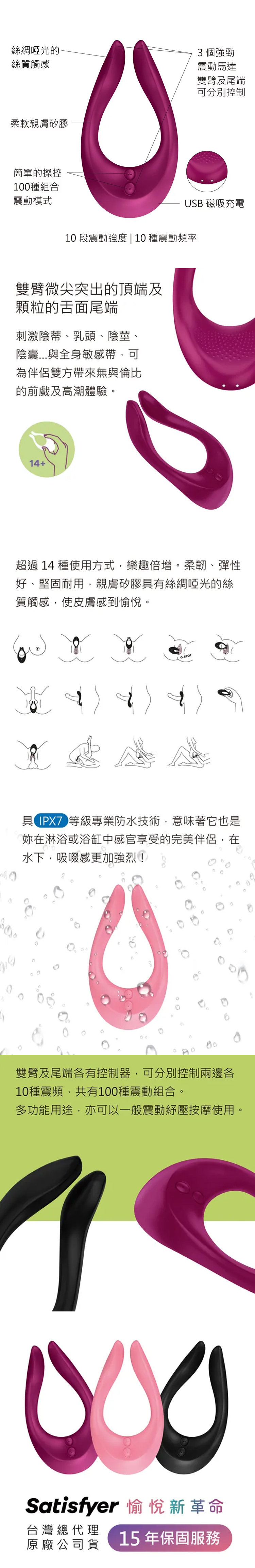 超過 14 種使用方式,樂趣倍增。柔韌、彈性好、堅固耐用,親膚矽膠具有絲綢啞光的絲質觸感,使皮膚感到愉悅。