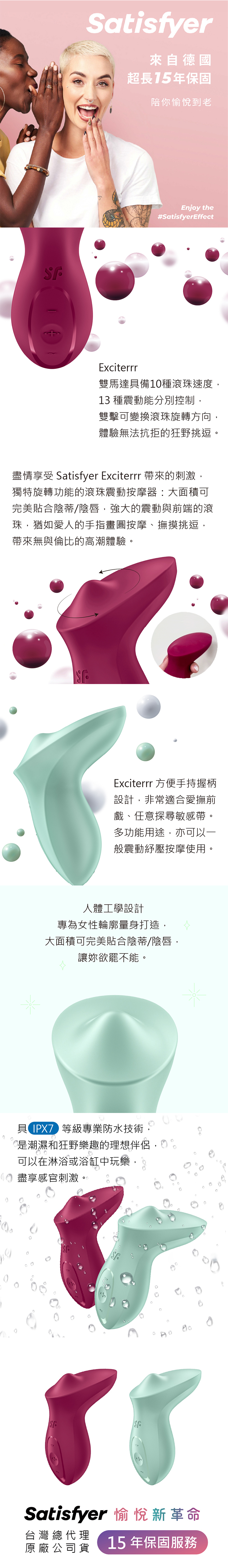 ‧ IPX7全防水,可於浸浴時使用