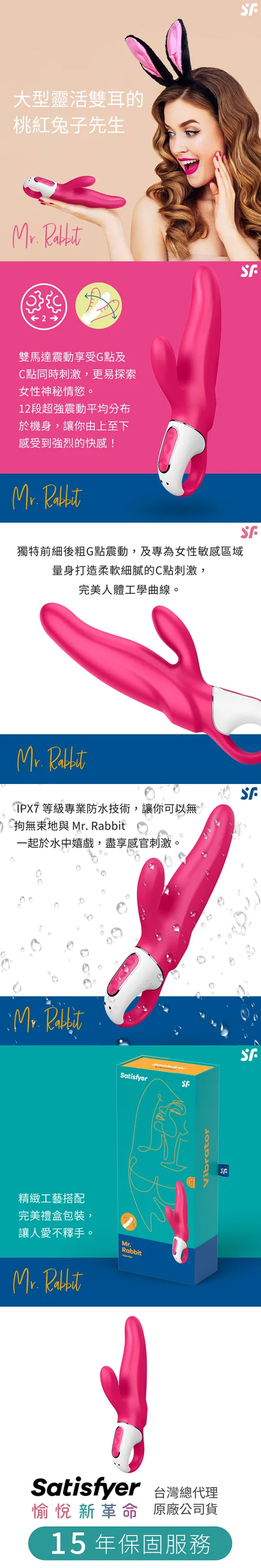 IPX7 等級專業防水技術,讓你可以無拘無束地與 Mr. Rabbit 一起於水中嬉戲,盡享感官刺激。