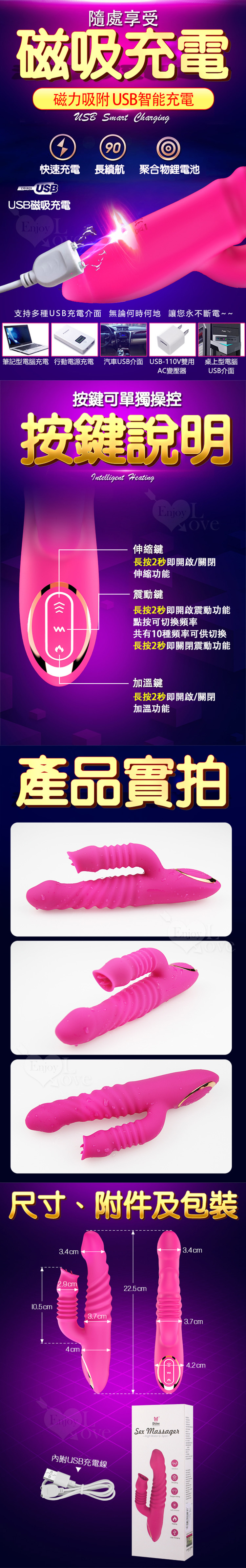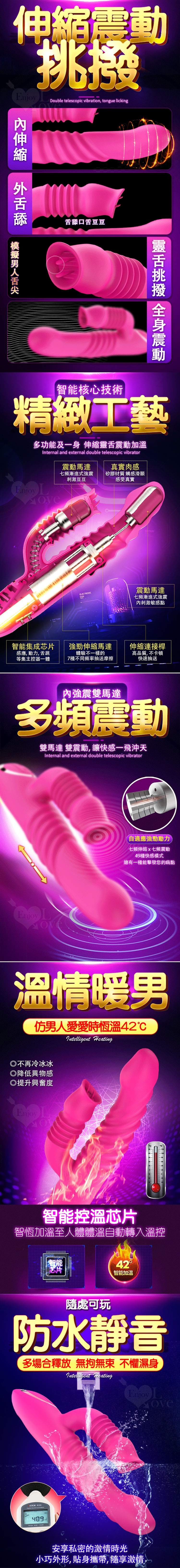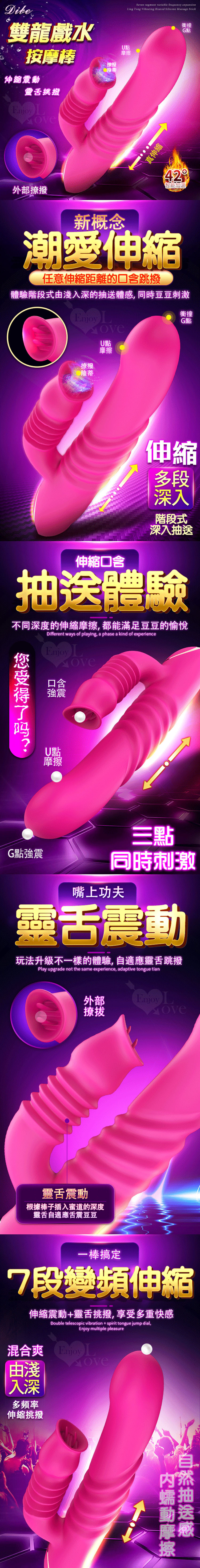 雙龍戲水 7頻伸縮靈舌震動加溫矽膠按摩棒