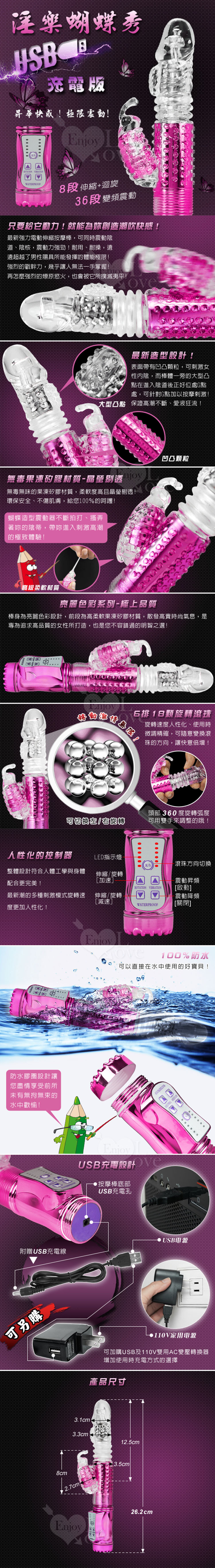 淫樂蝴蝶秀 8迴旋x36段變頻滾珠伸縮充電式按摩棒