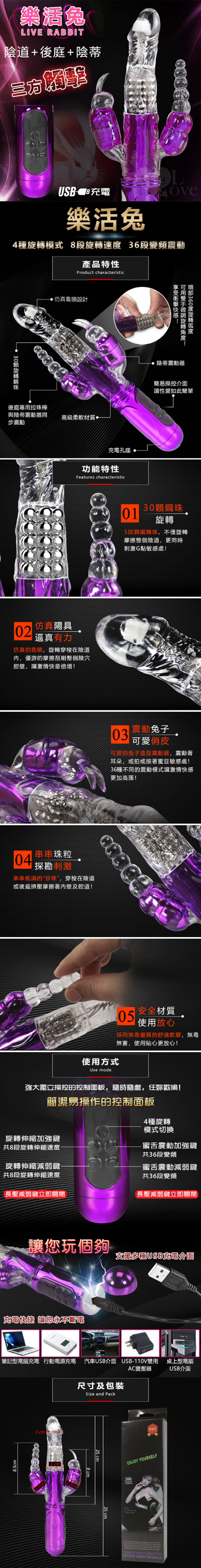 樂活兔 多功能三方觸擊旋轉變頻震動充電按摩棒
