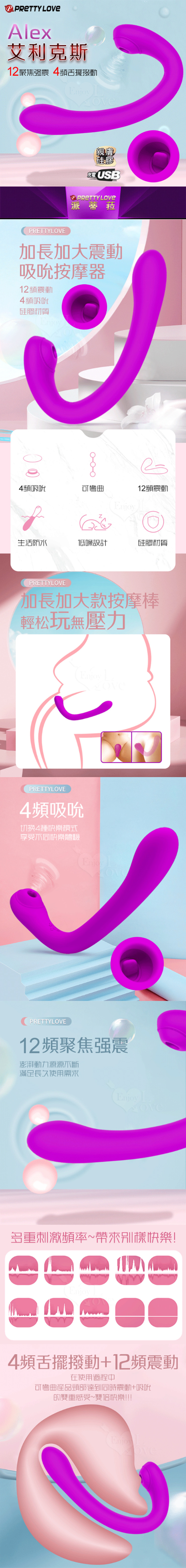 PRETTY LOVE Alex 艾利克斯 加長加大震動吸吮舌舔按摩器 12頻強震 4頻舌擺