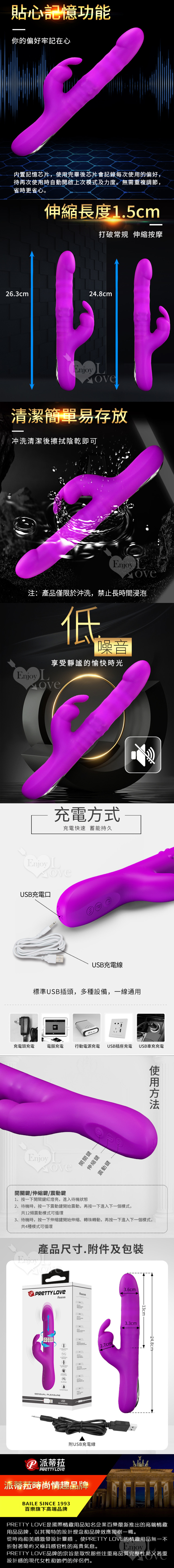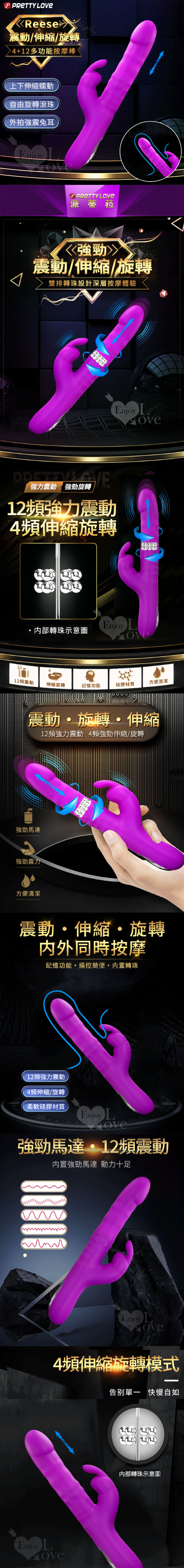 PRETTY LOVE Reese 上下伸縮 外拍強震兔耳多功能按摩棒 紫