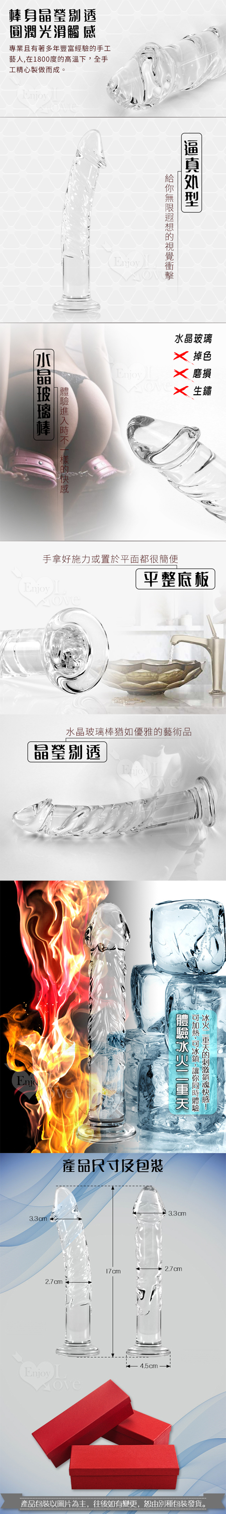 Enjoy Love 小雄風 晶瑩剔透仿真陽具水晶玻璃棒