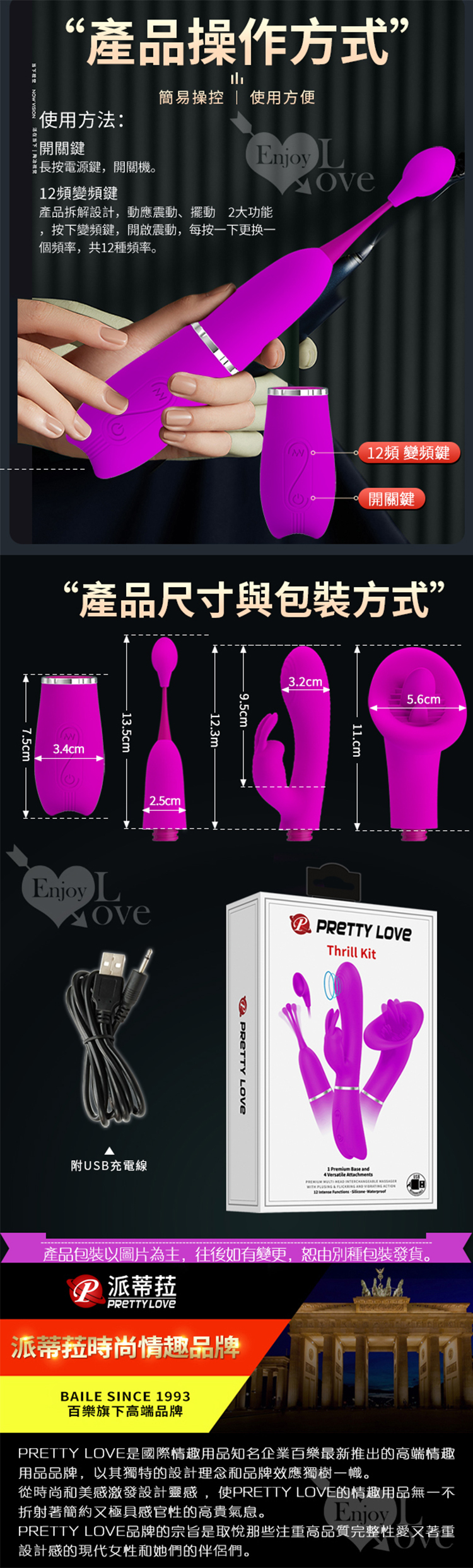 PRETTY LOVE 12頻強震舌擺3合一潮吹按摩棒多功能按摩棒套組 點潮筆