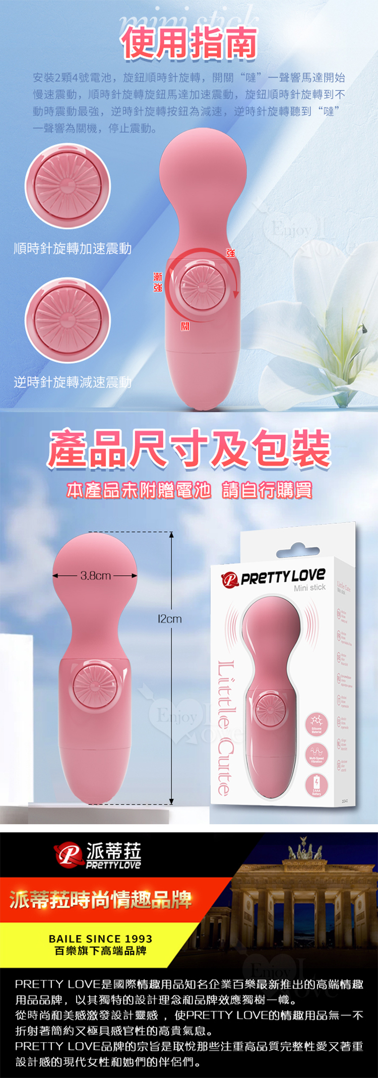PRETTY LOVE Mini stick 隨愛 無級微調變速小AV強力震動棒 (電池款)