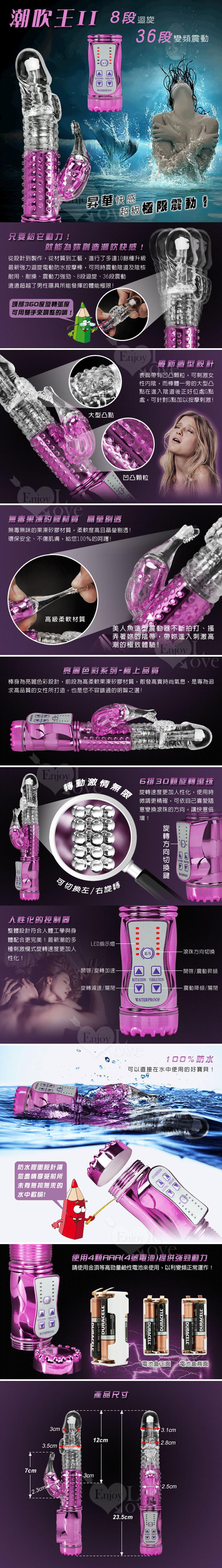 ※ 商品功能:8種轉速+左右切換旋轉方向+36段震頻+全機生活防水