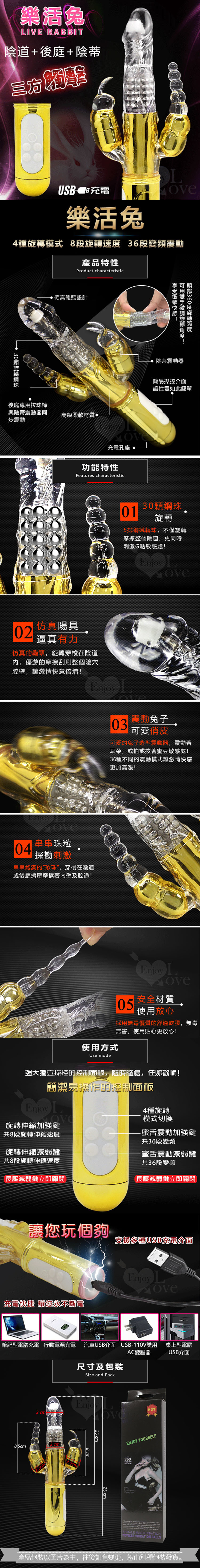 樂活兔 4X8X36三方觸擊多功能旋轉變頻震動按摩棒 炫金