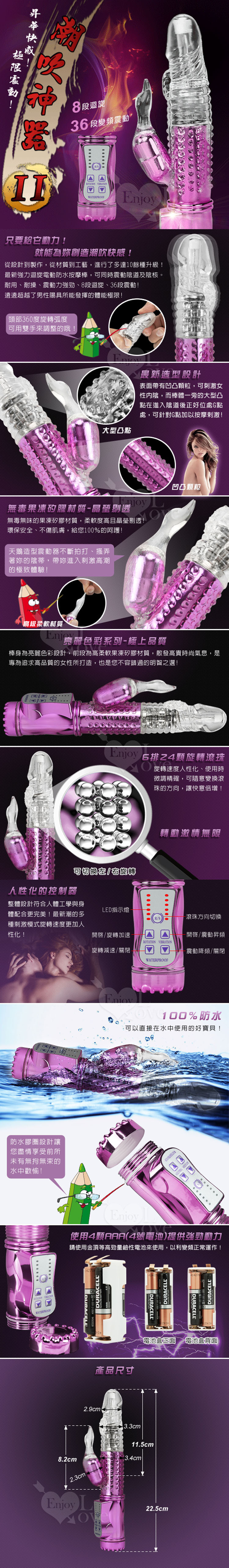 ※ 商品功能:8種轉速+左右切換旋轉方向+36段震頻+全機生活防水
