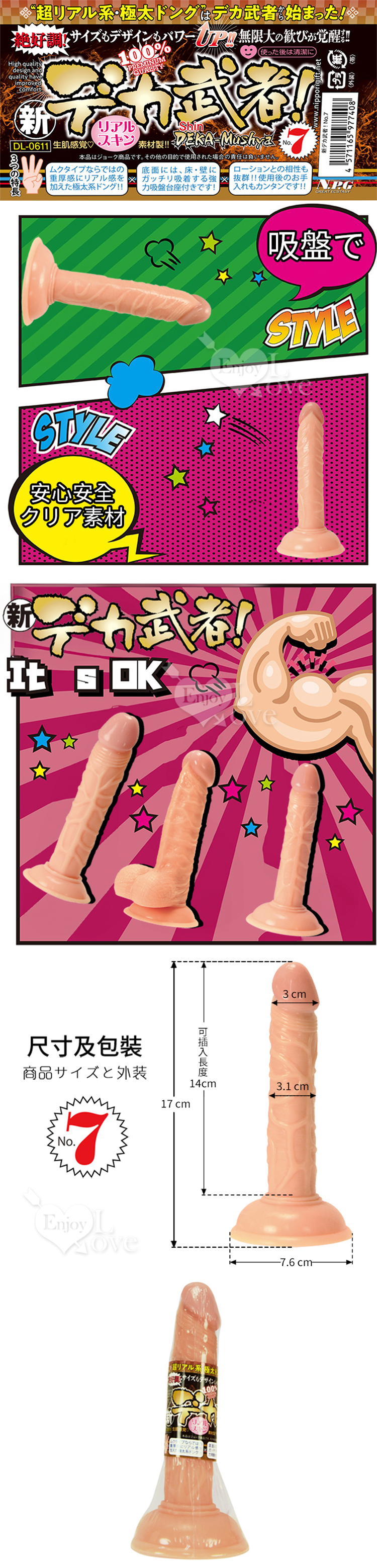 日本NPG 新武者 生感覺吸盤式逼真陰莖棒 NO.7