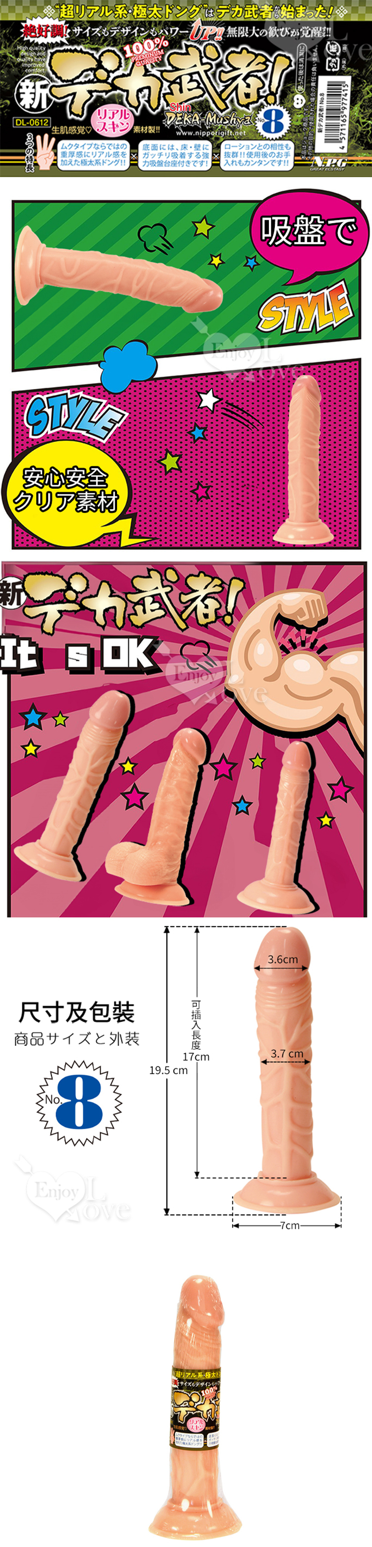 日本NPG 新武者 生感覺吸盤式逼真陰莖棒 NO.8