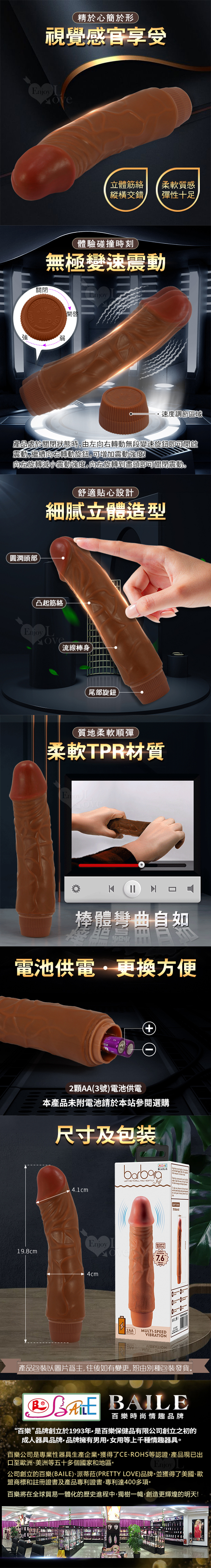 BAILE Dwary 德沃里 8.3英吋無極震動 褐色肌仿真陽具按摩棒