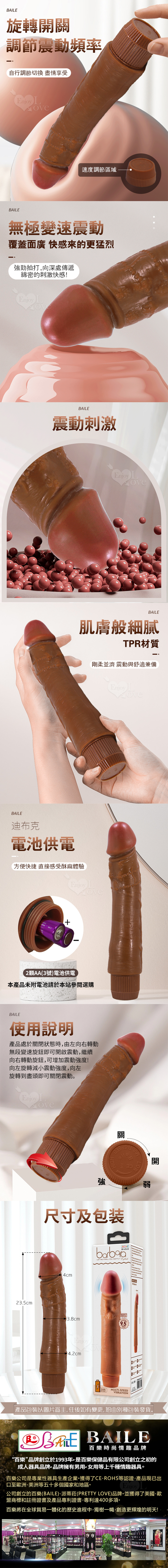BAILE Dybbuk 迪布克 9.5英吋無極震動 褐色肌仿真陽具按摩棒