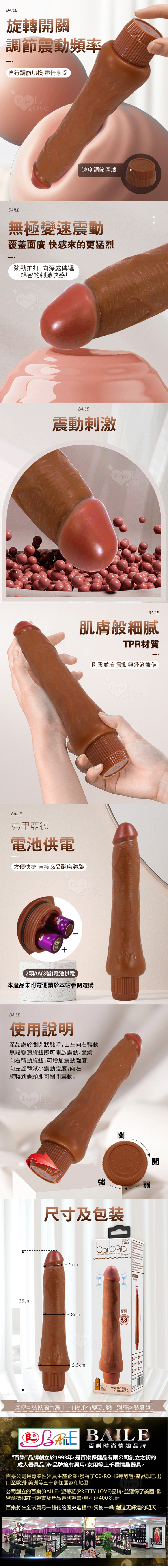 BAILE Fryad 弗里亞德 9.8英吋無極震動 褐色肌仿真陽具按摩棒