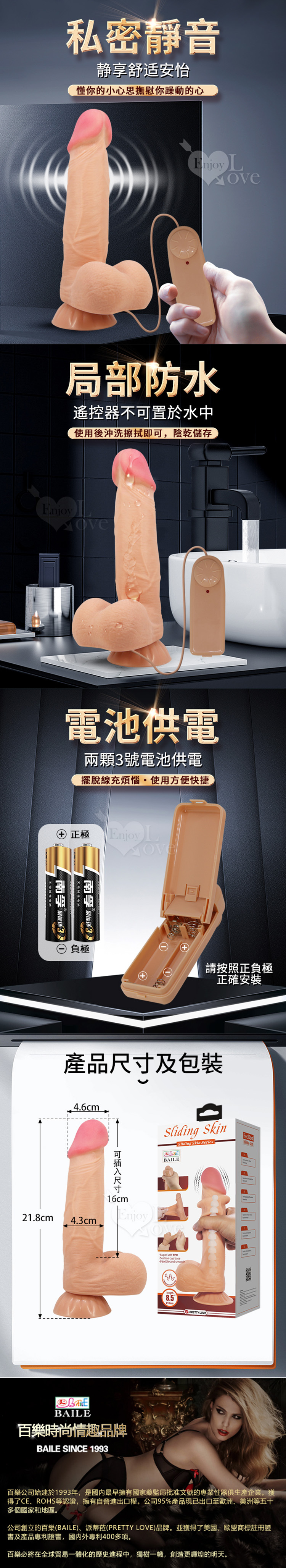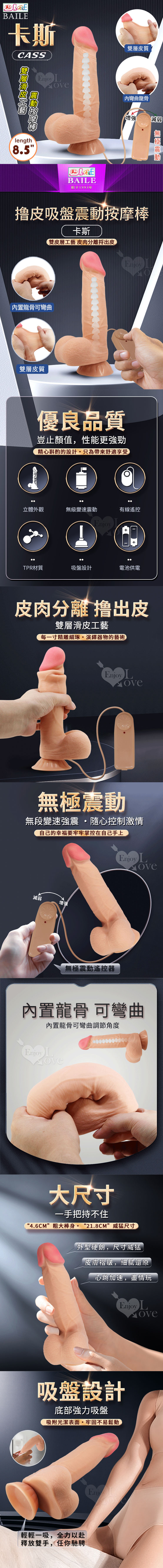 BAILE 卡斯 內挺外柔雙層滑皮龍骨吸盤假陽具 8.5吋 (電池款)