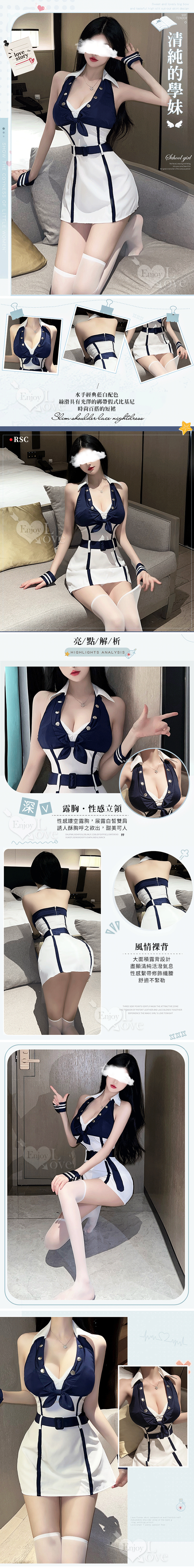 清純戀曲 水手領四件式立領收腰連身洋裝套裝