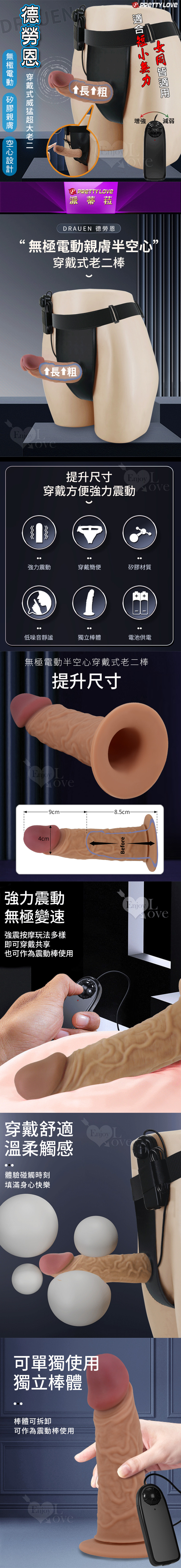 PRETTY LOVE 德勞恩 男用親膚矽膠半空心陽具穿戴褲 電動款