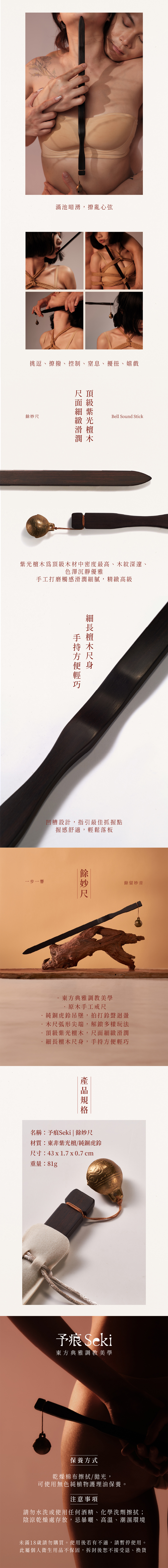•細長檀木尺身,手持方便輕巧
