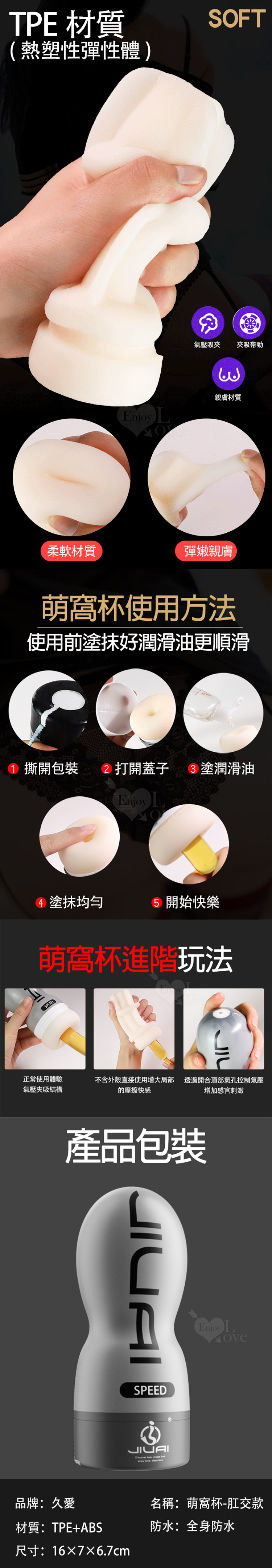 JIUAI 萌窩杯 氣壓吸夾螺紋自慰杯 肛交款 灰