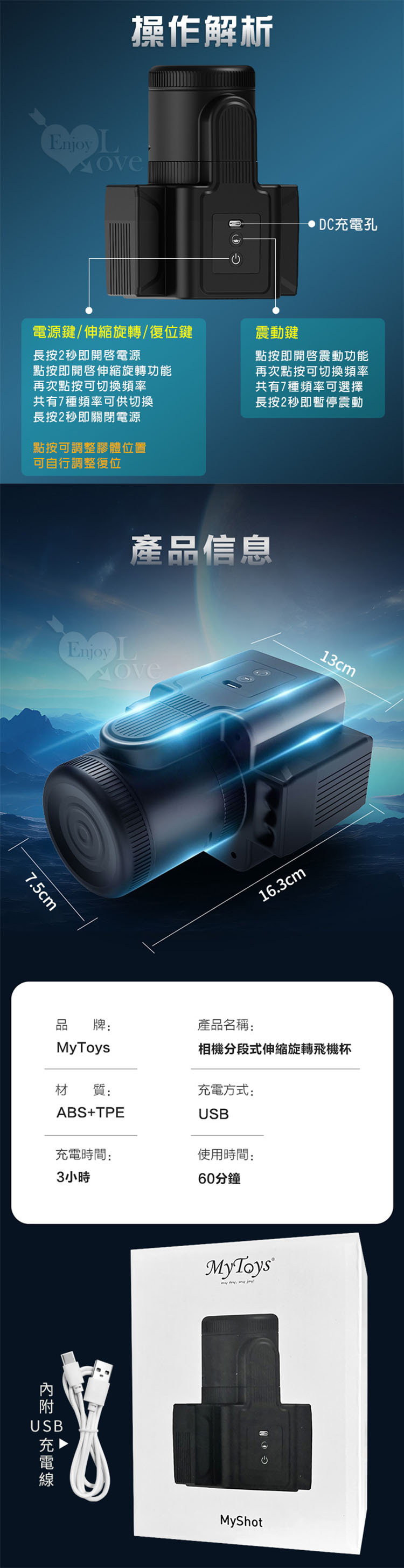 Mytoys 潮玩 伸縮旋轉震動榨精快感電動飛機杯 相機造型