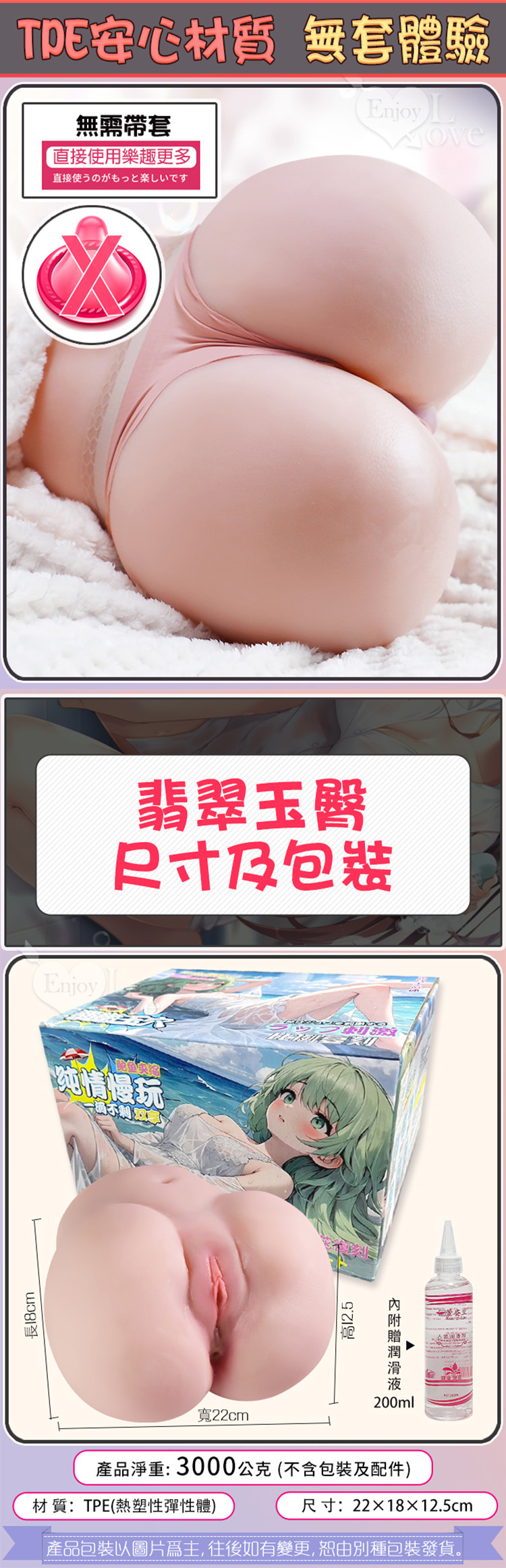 翡翠玉臀 擬真皮紋雙穴腔道美臀自慰器 3kg