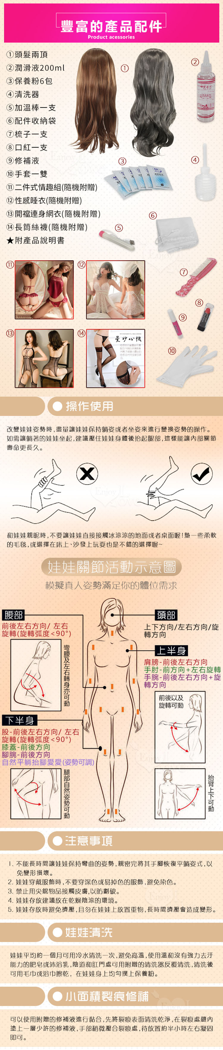 使用部位:陰交、肛交、口交、乳交四種性交用法。