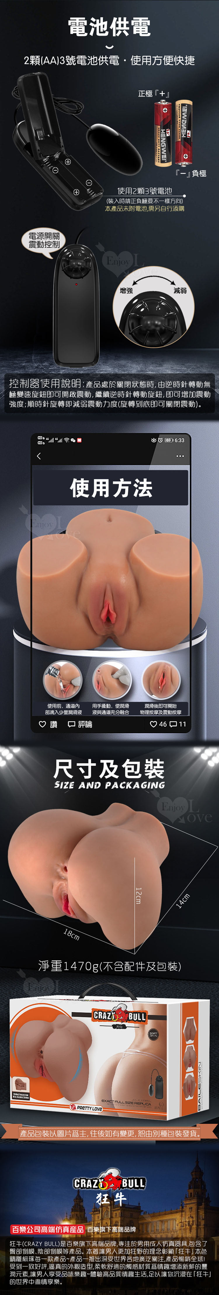 CARZY BULL 狂牛 塔盧拉 褐色肌 無極震蛋雙穴自慰器 1470g