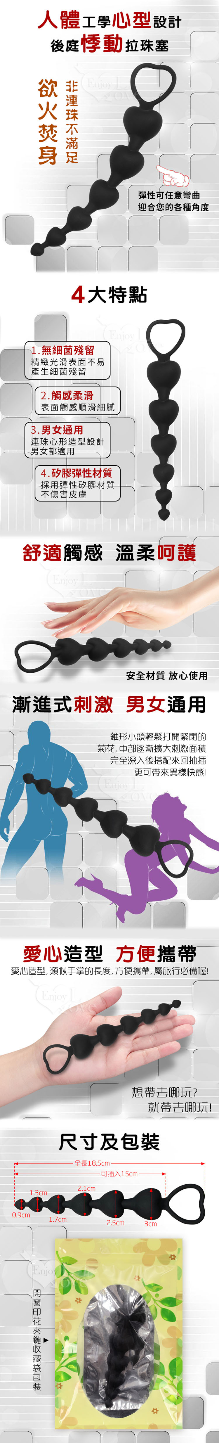 串串心 連環心型矽膠後庭拉珠棒