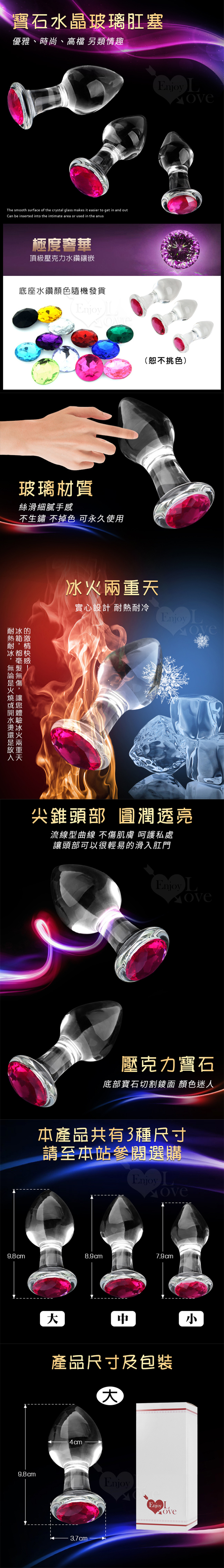 Enjoy Love 寶石水晶栓玻璃後庭肛塞 (小/中/大)