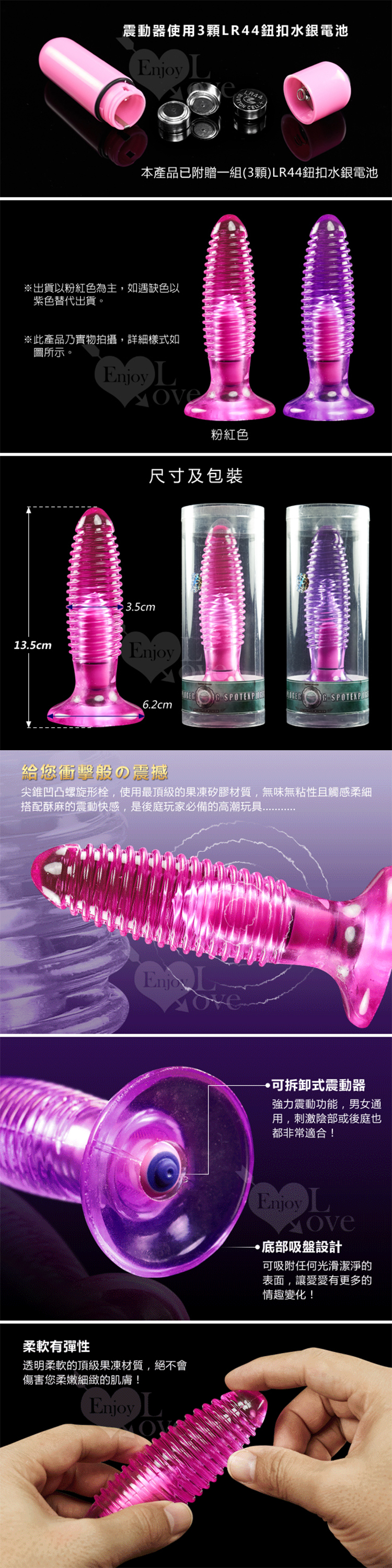 使用最頂級的果凍矽膠材質,無味無粘性且觸感柔細,軟柔且富彈性,搭配酥麻的震動快感,使用更自在輕鬆,是後庭玩家必備的高潮玩具。