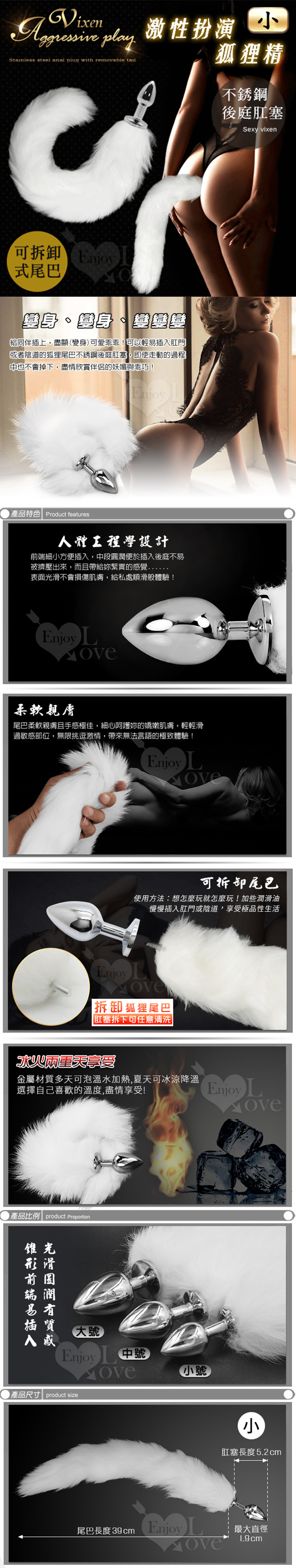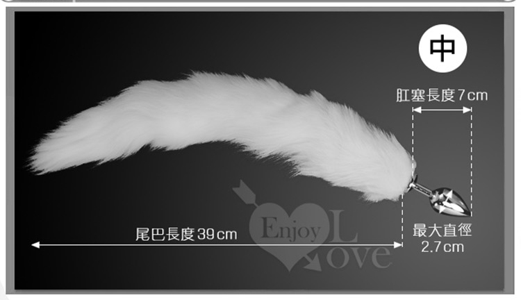 扮演狐狸精 不銹鋼後庭肛塞+純白可拆尾巴毛 (小/中/大)