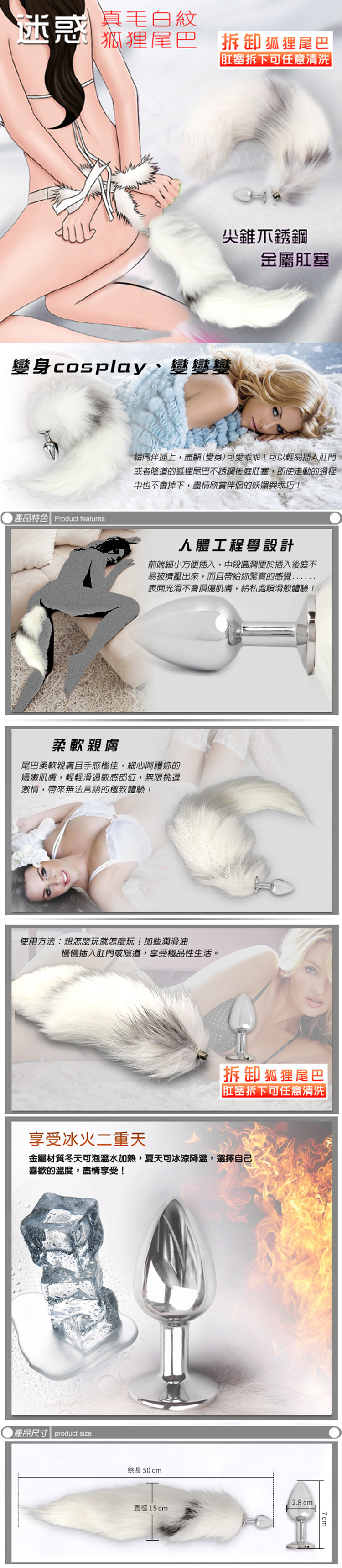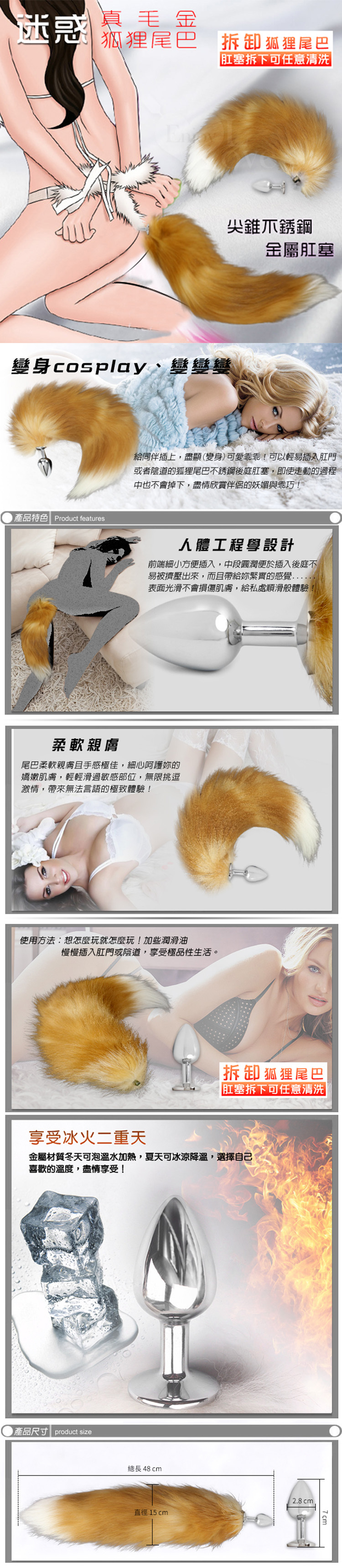 迷惑 狐狸精尾巴不銹鋼金屬肛塞 (白紋尾/黃金尾)