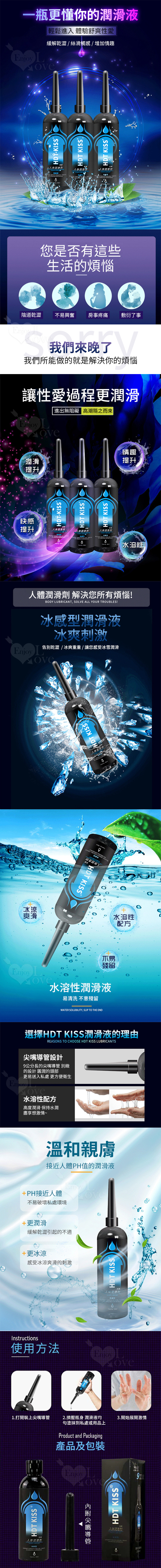 HDT KISS 冰感型 後庭肛交人體潤滑液 200ML 附尖嘴導管