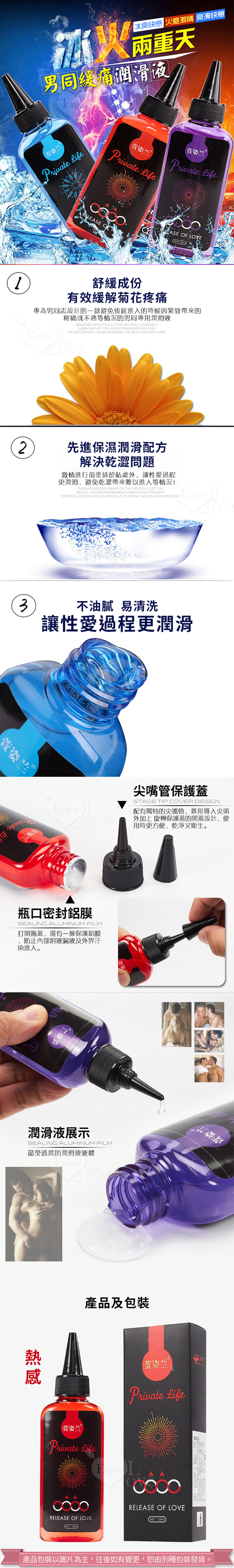 本品特有的熱感因子配方,塗抹所需部位,讓愛火燎原,是專為特殊人群設計的一款潤滑液。