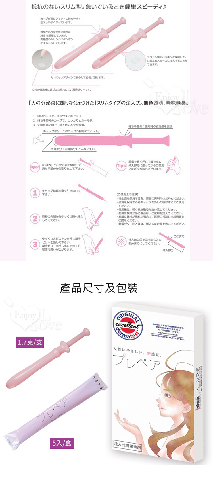 “盡可能接近人體分泌物”的纖細型注射型。無色透明,無味無臭。