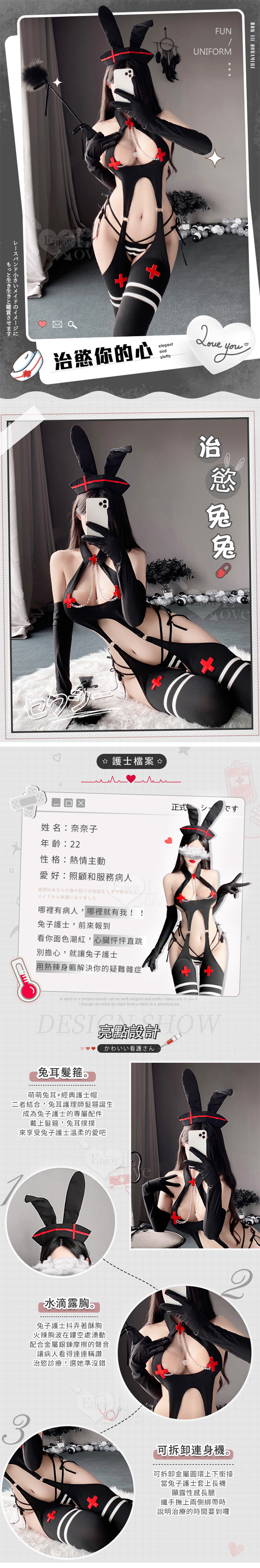 兔耳護士 銀鍊點綴四件式連身貓裝