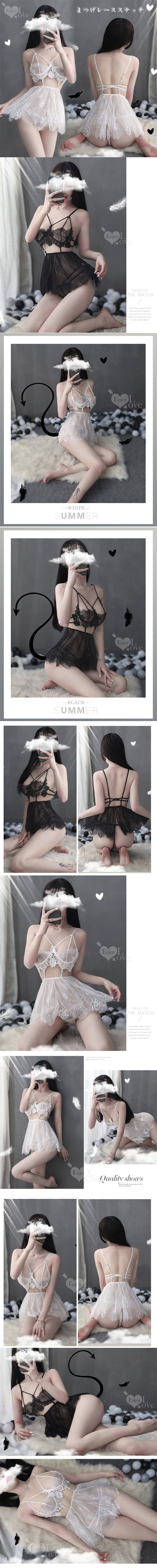 睫毛蕾絲 水滴波濤 二件式水滴美胸柔紗睡衣