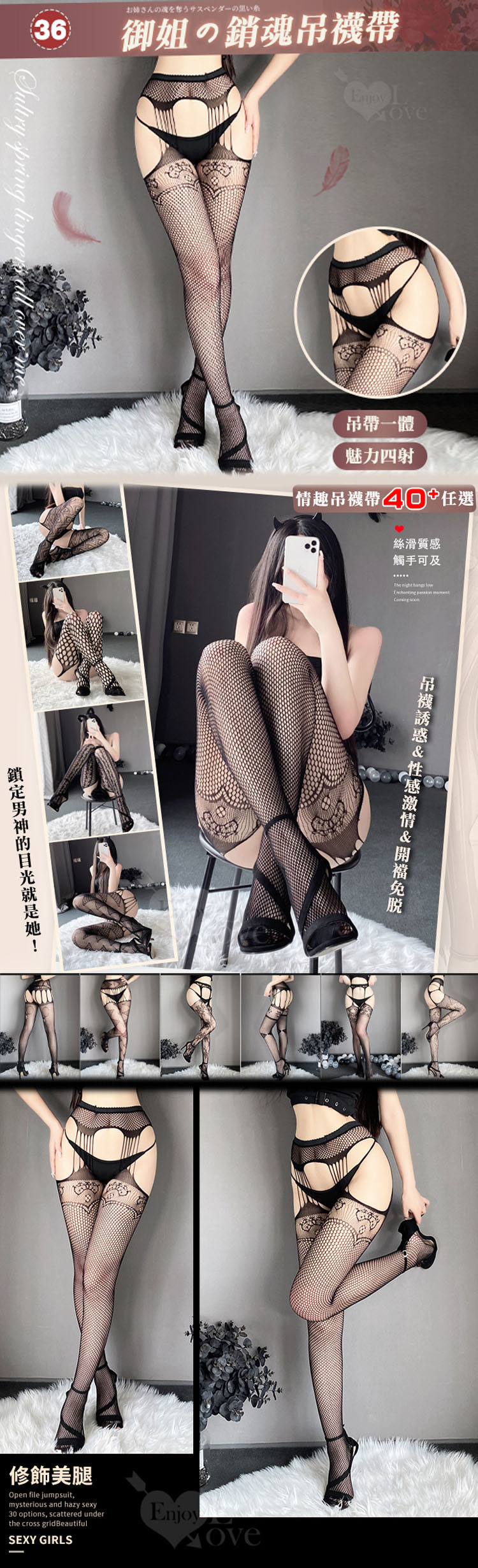 吊襪帶造型 鏤空激情免脫連身網襪 36