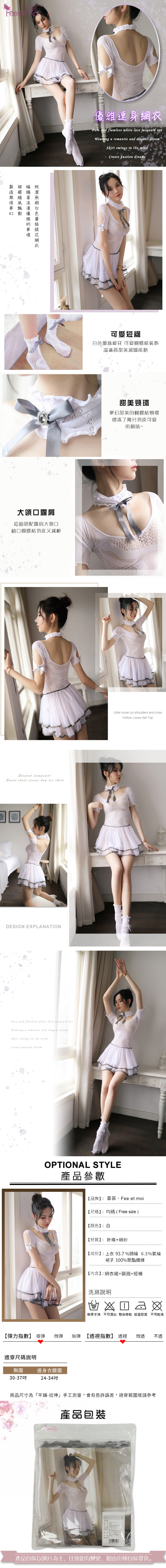 甜美短袖蝴蝶結拼接紗裙連身網衣三件組