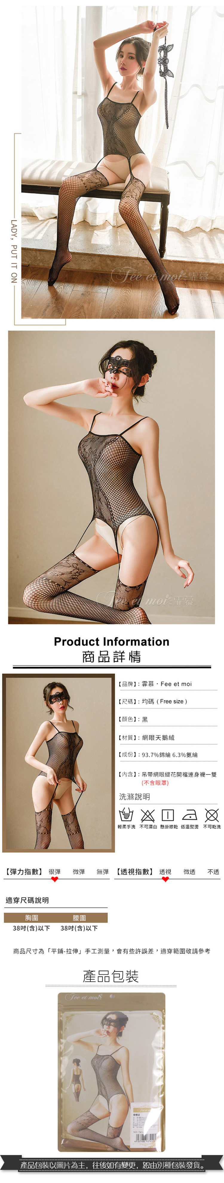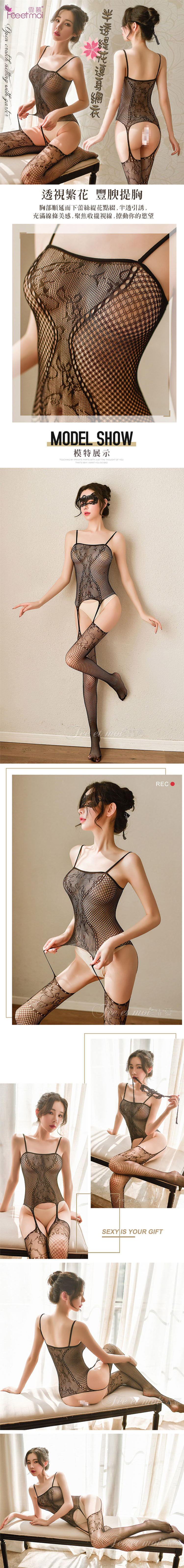 極性貓裝半透緹花美感線條吊襪開襠連身網衣