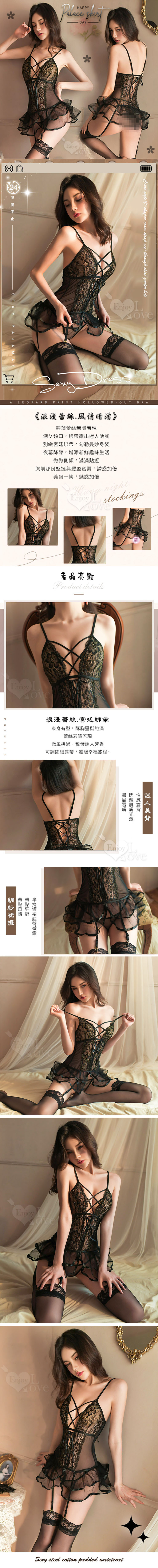 馬甲裙宮廷風V字交叉細帶澎裙吊襪帶三件組