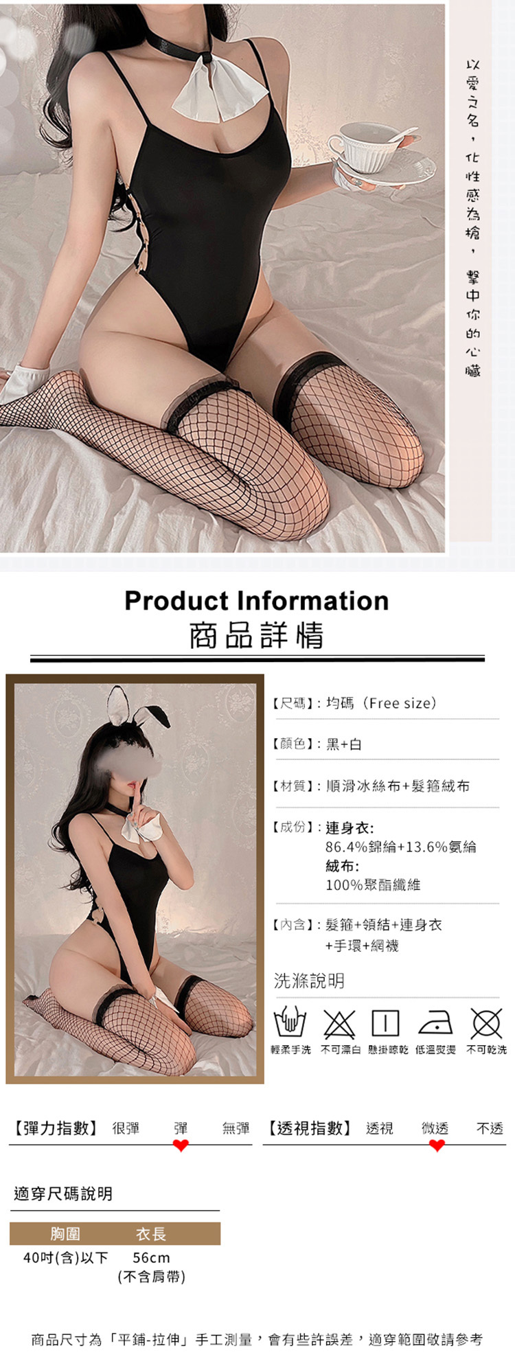 兔女郎角色扮演蝴蝶領結深U低胸五件式套裝